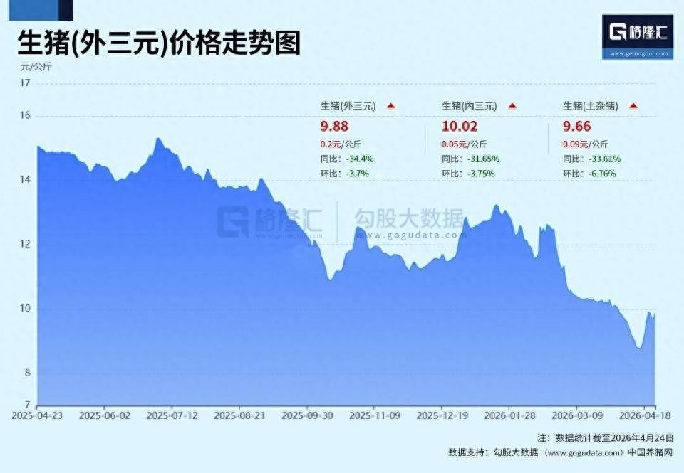 格隆汇4月24日|国内猪价快速回升配资平台网址,根据4月24日最新数据,生猪(外三元)价格回升至9.88元/公斤。